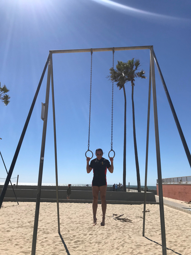 Making sure that we went the right way, we made sure that we stopped by Muscle Beach. Melvyn was scared to bike along the street, as he never biked on a main road. By the time we hit the O’Venice sign, we turned into the beach until we found that iconic gym. Minutes later, we found the Muscle Beach, which was much rustier than I imagined. Only one person was working out, and he was very fit – however, no muscle men in the area, but a lot of skater boys. Because of this special occasion, I brought my one outfit that I had planned for this trip: my Incredibles fitness outfit. Although there was a $10 fee for the gym, I posed in front of Muscle Beach, and attempted to do a muscle-up… I still need to work on my technique. For the remainder of the trip, we biked all the way back to the hotel, and it was about 2:30PM. For six hours, we managed to accomplish a lot in the morning.